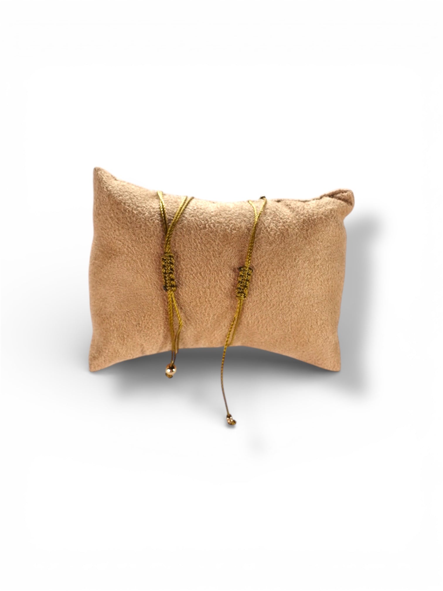 Su cordón en tono oliva aporta un carácter orgánico y moderno, ideal para quienes prefieren accesorios sutiles pero con significado. Perfecta para usar sola o en combinación con otras pulseras para un look más boho chic.